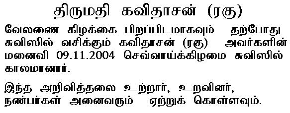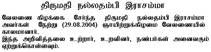 rasa (son) Rajendran Passed Away on 03/09/2008 at Esumoddai, Jaffna.