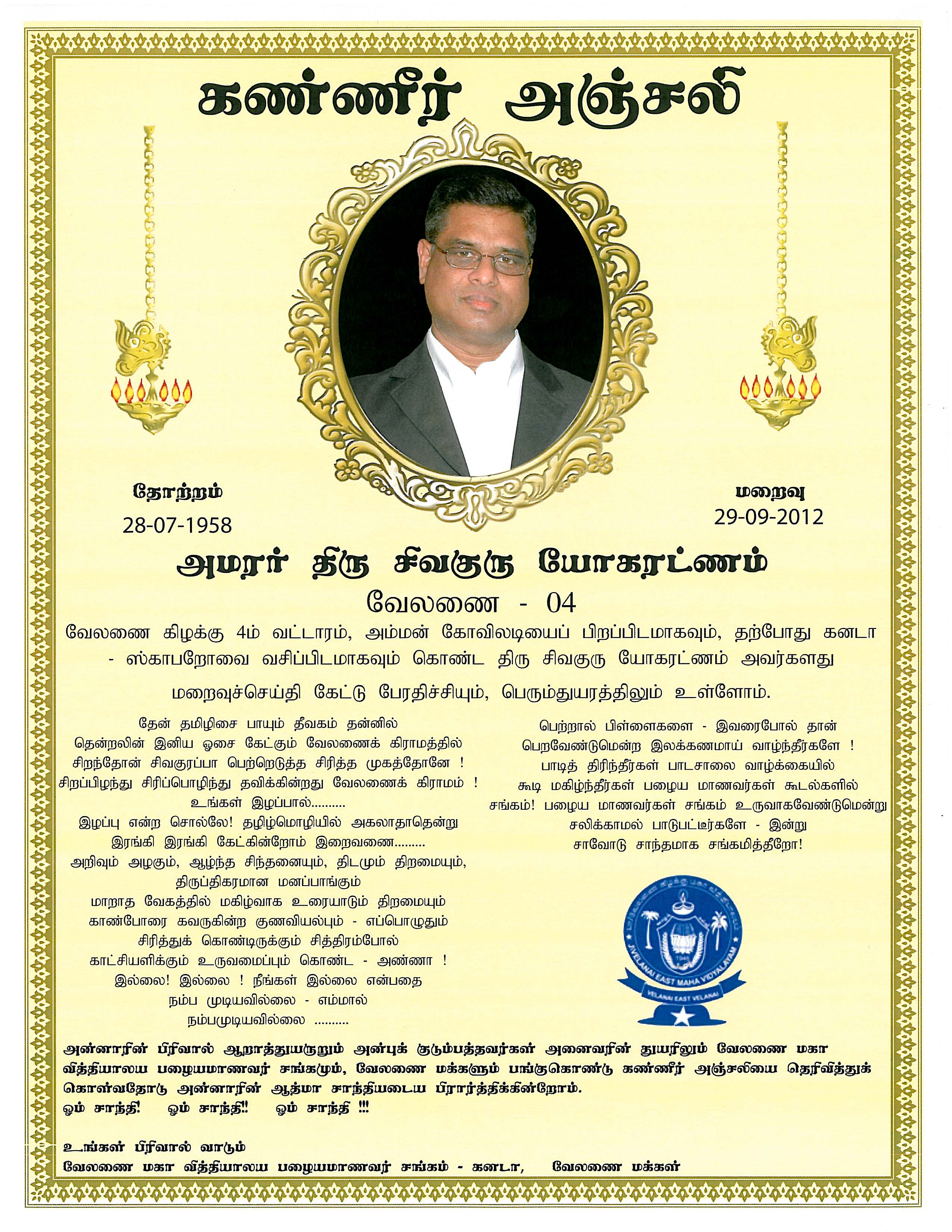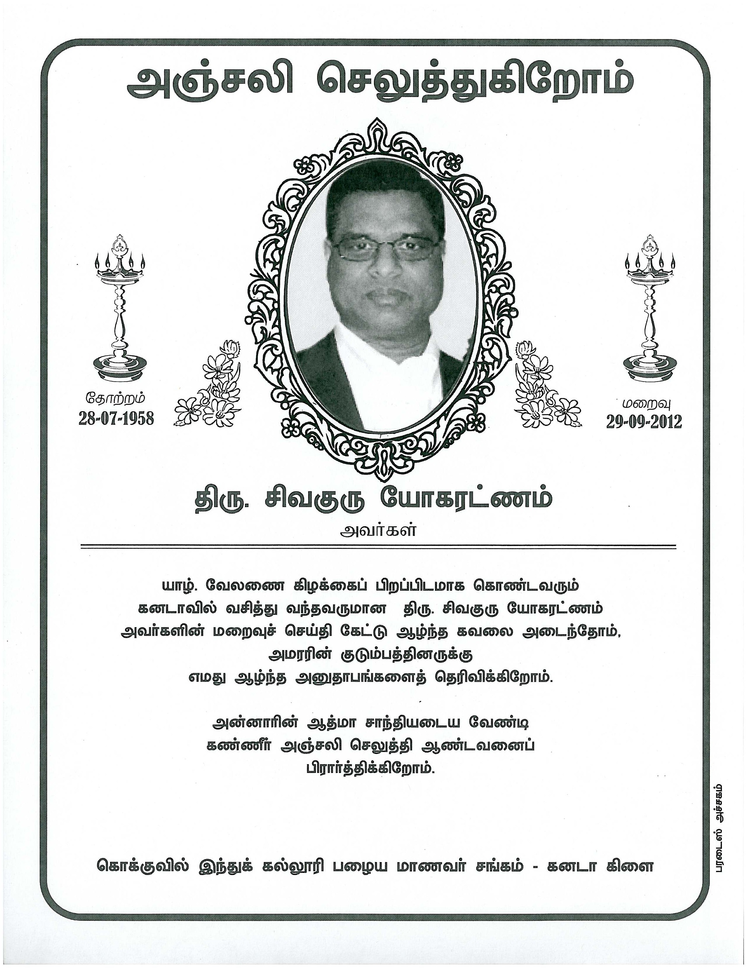 சிவகுரு யோகரட்ணம் அவர்கள் 29-09-2012 சனிக்கிழமை அன்று கனடாவில்