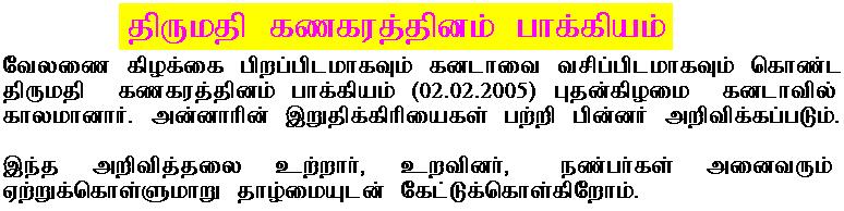 நேற்று 03.03.2010 புதன்கிழமை அன்று காலமானார். |